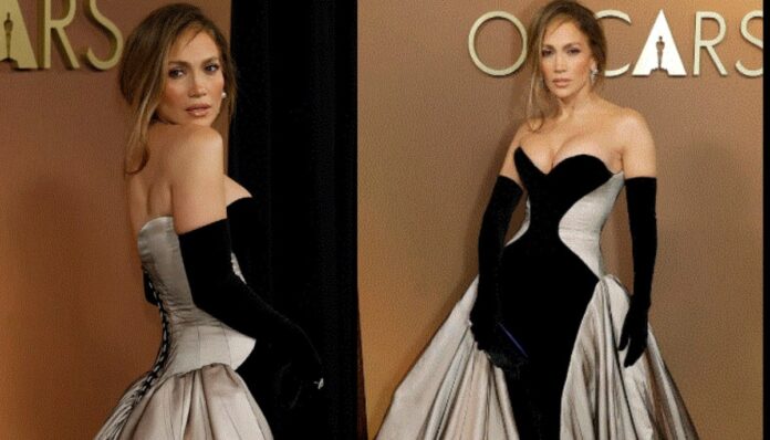 Jennifer Lopez dresses to impress everyday at the 16th Governors Awards in Los Angeles on Sunday, wearing a striking black-and ivory Tamara Ralph F/W 2025 couture gown.