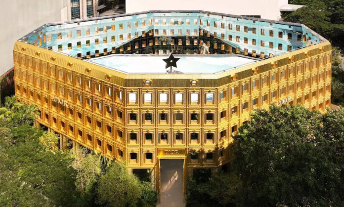 The creative direction for Dior Gold House was led by Luca Albero, Dior’s Visual Merchandising Creation and Image Director. Albero, known for curating Dior’s men’s and women’s collections, has transformed the space into a visual masterpiece. Within the 2,500 square meters of gardens and 800 square meters of interiors, visitors are treated to an artful display of Dior’s collections, including exclusive items designed specifically for Bangkok, such as a gold-toned Lady D-Joy bag with pearl embroidery.