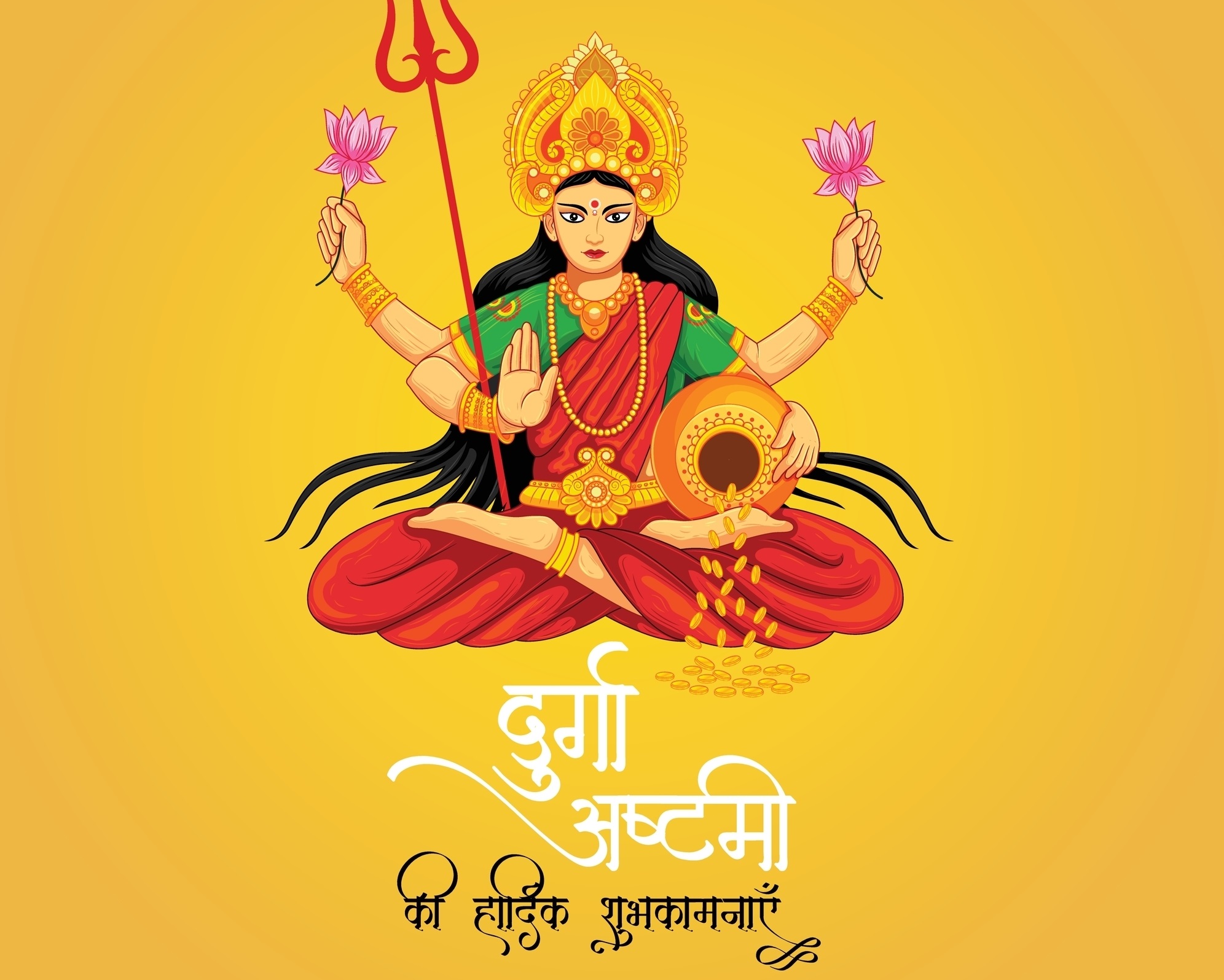 On Ashtami, people pray to the goddess, rejoice in her might, and wish for blessings of power and protection. In celebration, many also send wishes, messages, and greetings to their relatives to enjoy festive bliss.